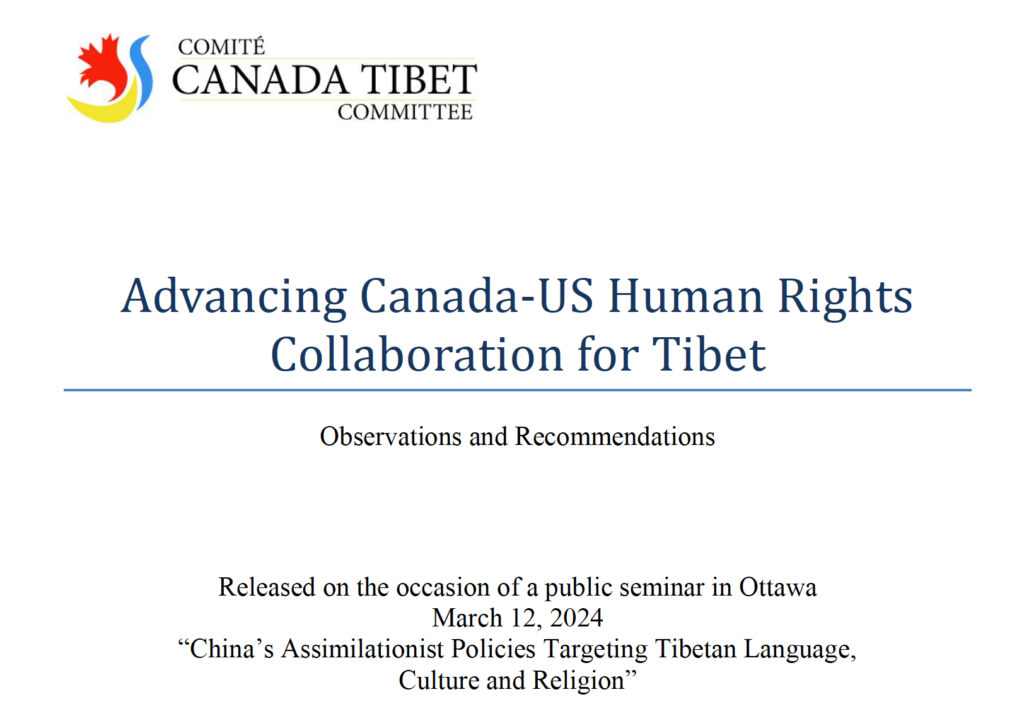 Canada Tibet Committee calls for Enhanced Human Rights Collaboration Between Canada and the United States Ottawa, March 12, 2024:  In a new report issued today, the Canada Tibet Committee has called for increased collaboration between Canada and the United States in order to enhance the promotion of human rights in Tibet. The report, entitled Advancing Canada-US Human Rights […]