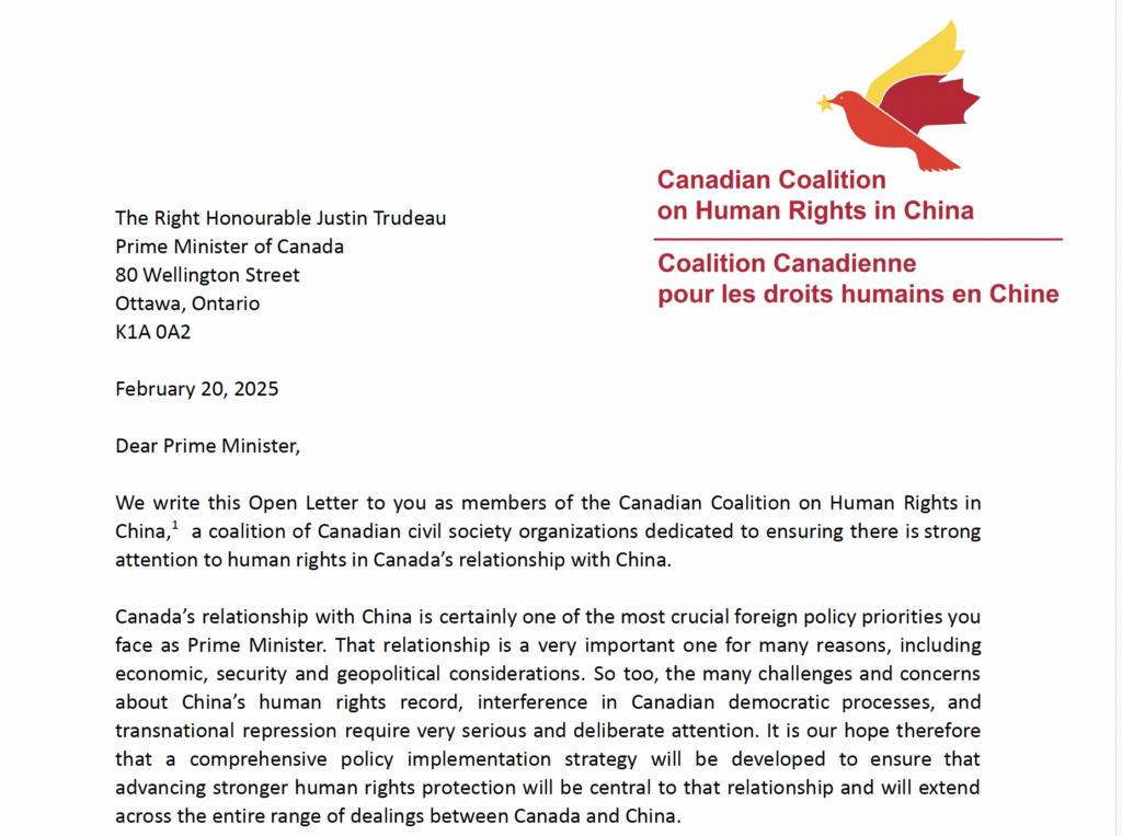 February 20, 2025 – The Canada Tibet Committee (CTC), as a co-founder and member of the Canadian Coalition on Human Rights in China, has co-signed an open letter to Prime Minister Justin Trudeau, urging stronger action against foreign interference, transnational repression, and human rights violations by the Chinese government. The coalition, comprising leading Canadian human rights organizations, stresses that […]