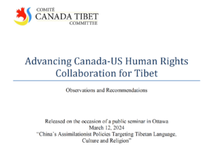 Canada Tibet Committee calls for Enhanced Human Rights Collaboration Between Canada and the United States Ottawa, March 12, 2024:  In a new report issued today, the Canada